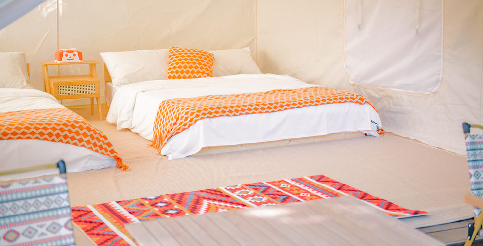 簡單來說,就是不需要自己搭帳篷的露營方式。營區已為你事先搭好帳篷,裡頭附有床墊、照明、插座,甚至有些高級款還有冷暖氣設備。你只要帶著行李、人、食物,就能入住自然裡的「野外套房」。
